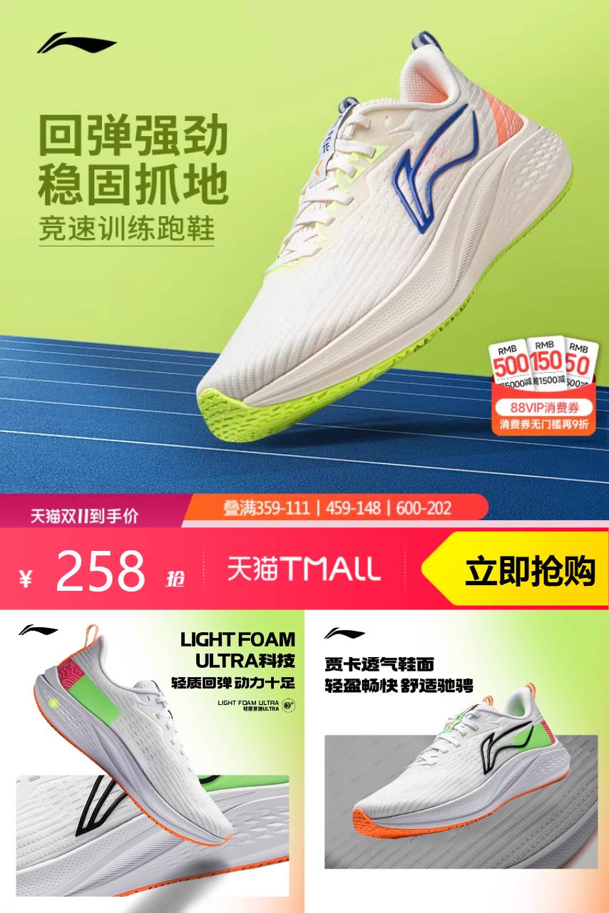 【可叠李宁大额券1000-170,消费9折券,9.4折购物金后到手124左右;得物200起】李宁赤兔7丨跑步鞋男款中考体育训练专用透气运动鞋!