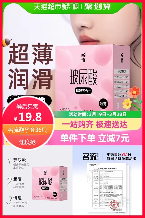 包邮半日达,券10元+超市立减10元+淘金币抵扣1.58元+88vip省0.99元后约17.23元,名流玻尿酸情趣五合一系列~享多种情趣体验,爱爱不重样,闭眼抢!轻透纤薄,顺畅舒适,多种系列,多种搭配,满足你的各种选择~超划算!保密发货放心买!