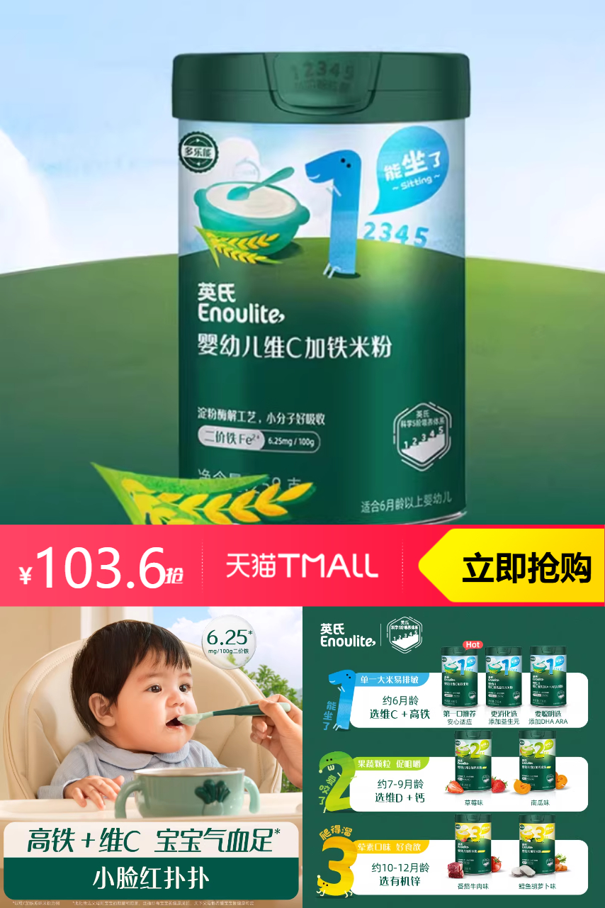 【拍2立减22+新客3元+淘金币12.18到手91.42+叠加超市补贴、消费券到手更优惠】【拍2】英氏米粉婴儿维C加铁米粉米糊宝宝,好吸收 不涨肚乖乖不闹腾 整觉睡香香~