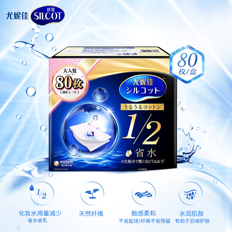 【运费6,淘金币1.98,到手26.37】舒蔻尤妮佳化妆棉1/2湿敷补水吸收80枚,超赞!