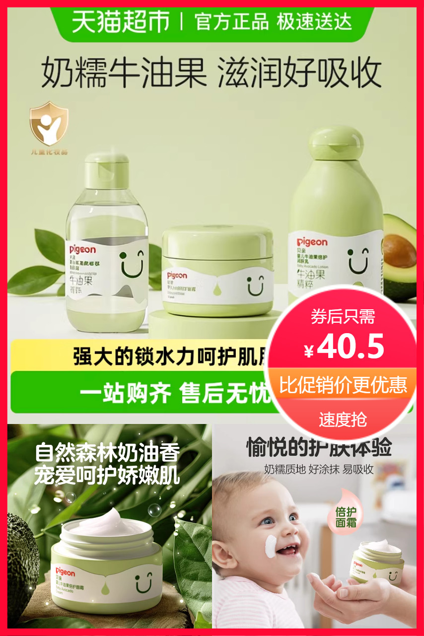 【VIP+淘金币到手更优惠】Pigeon贝亲婴儿牛油果倍护润肤霜50g*1,补水保湿滋润霜宝宝儿童霜,呵护娇嫩肌,成分更安心,温和舒缓宝宝小脸!