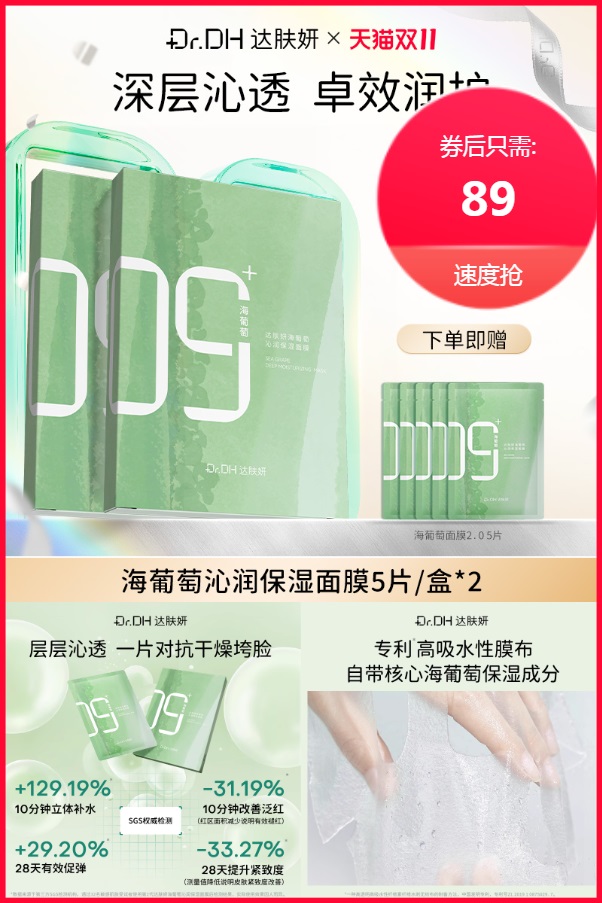 达肤妍海葡萄保湿修护面膜15片 11元减17 商品纠错