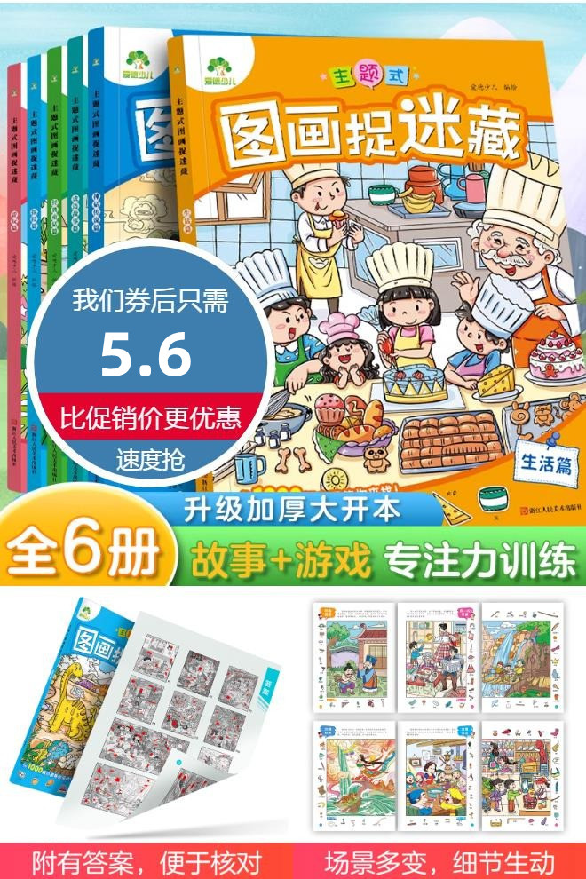 ⭕加厚主题式图画捉迷藏趣味游戏专注力训练书