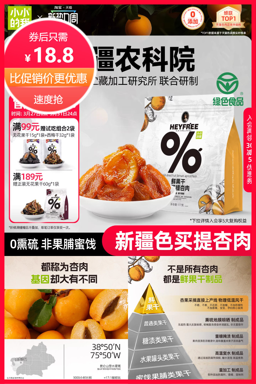 【淘金币到手更优惠】小小的我纯净杏干,新疆农科院联合研制,孕妇级零食,0添加,干净配料表,酸甜可口,低脂营养,人体微量元素的加油站,老少皆宜!