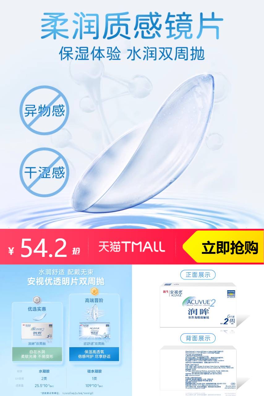 安视优 强生安视优近视隐形眼镜润眸双周抛6片 65元减10.8 商品纠错