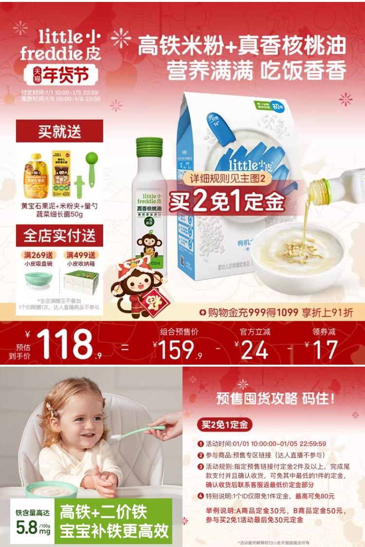 小皮 小皮婴儿高铁有机米粉辅食+核桃油100ml 1元减21 商品纠错