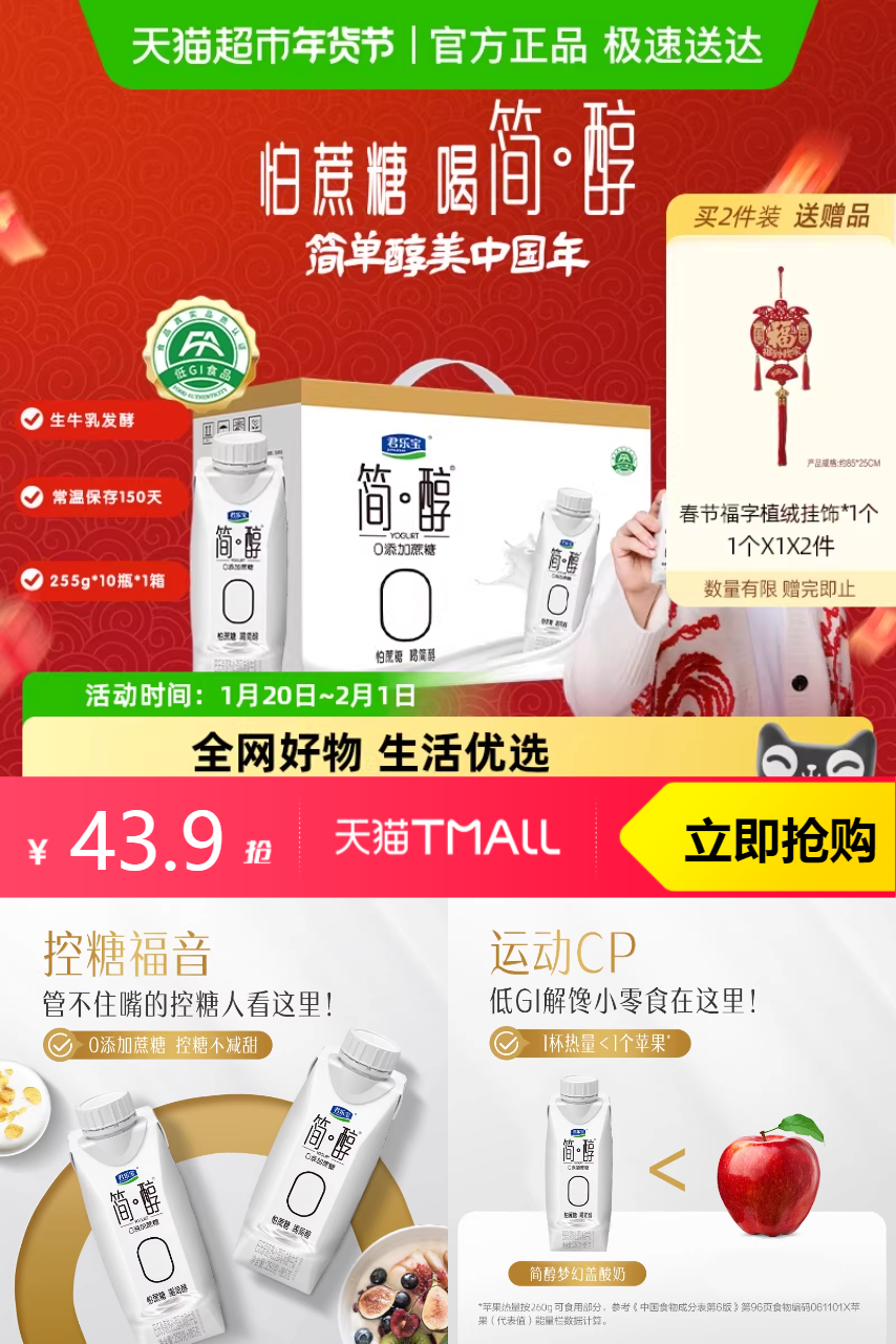 推荐:君乐宝简醇原味酸奶255g*10瓶礼盒装