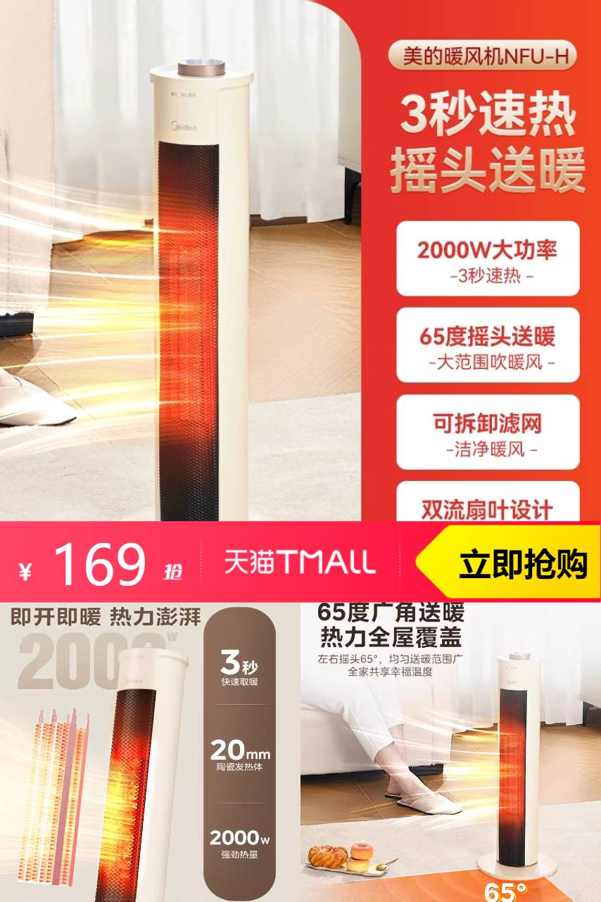 ⭕美的暖风机取暖器家用小太阳节能石墨烯暖气