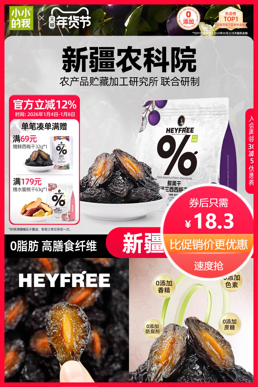 【淘金币到手更优惠】小小的我纯净西梅干,新疆农科院联合研制,孕妇级零食,树上熟鲜果,0添加,干净配料表,酸甜可口,低脂营养,助力肠道清理,多食无腹担,老少皆宜!