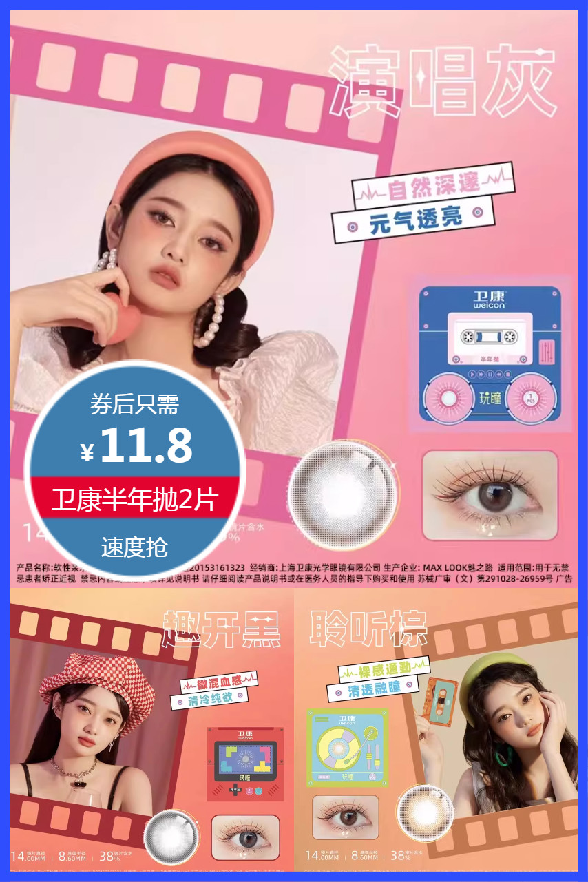 推荐:拍2件卫康玩瞳美瞳半年抛2片隐形眼镜