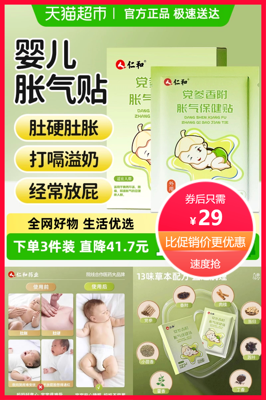 国药品牌保障,仁和药业,家里有宝宝的必备!孩子肠胀气、绞痛?打嗝溢奶?排气不通?统统可以解决!孩子安心入睡!速度抢!