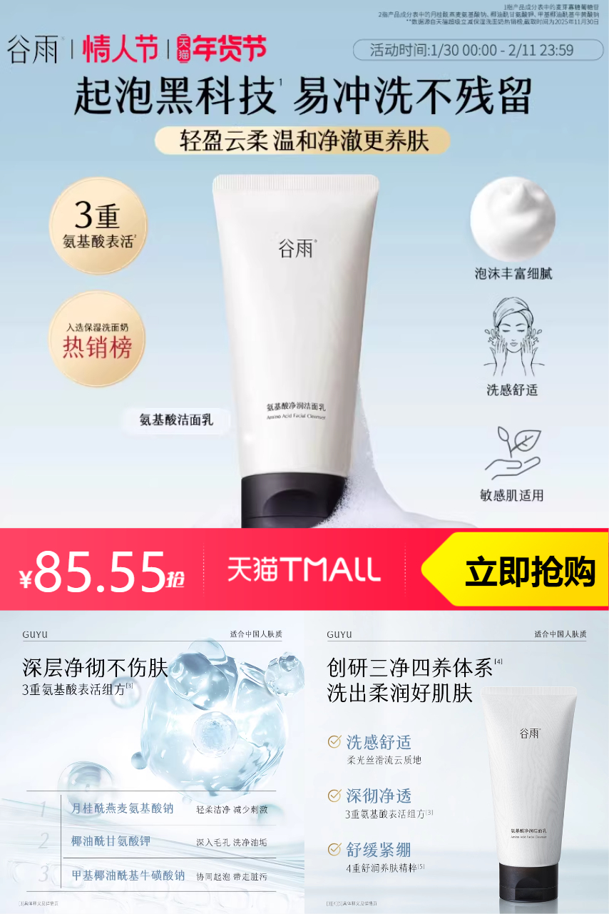 ⭕谷雨氨基酸洗面奶温和保湿深层清洁洁面2支
