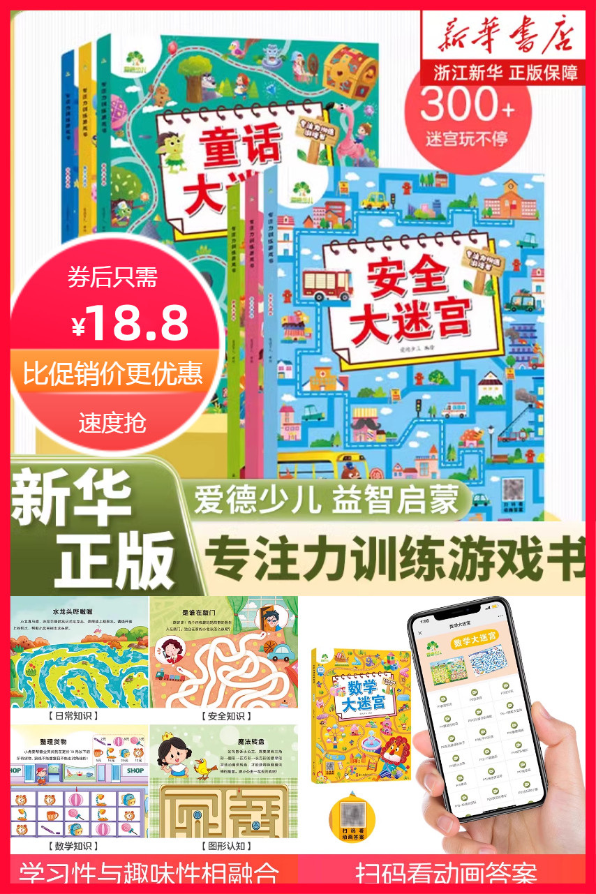 【套装任选,新华书店正版】爱德少儿专注力训练书,玩法多样,300+迷宫玩不停,学习性与趣味性相融合,场景多样,激发兴趣,可扫码看动画答案!千奇百遍变的路线提升孩子专注力!让孩子在锻炼专注力和观察力的同时学到实用的基础知识!