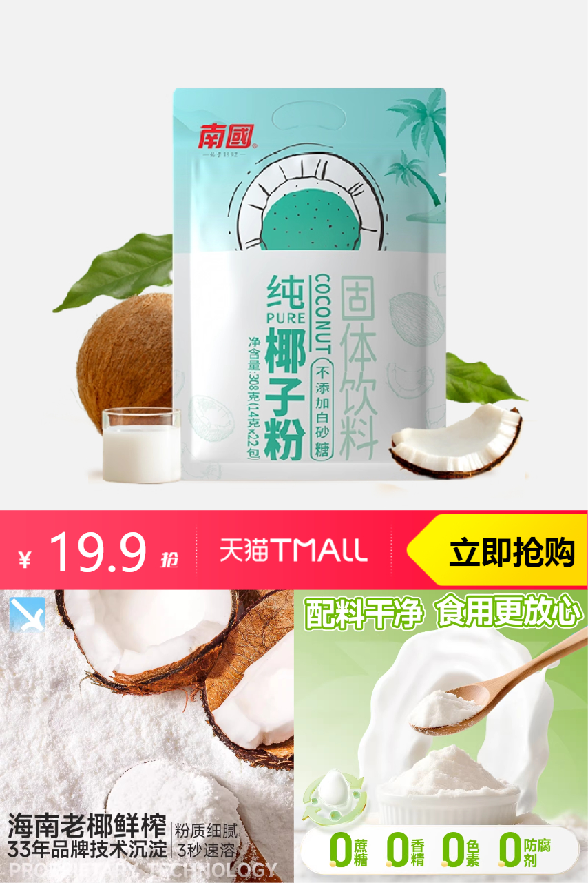 推荐:南国纯椰子粉无添加蔗糖14g*22条