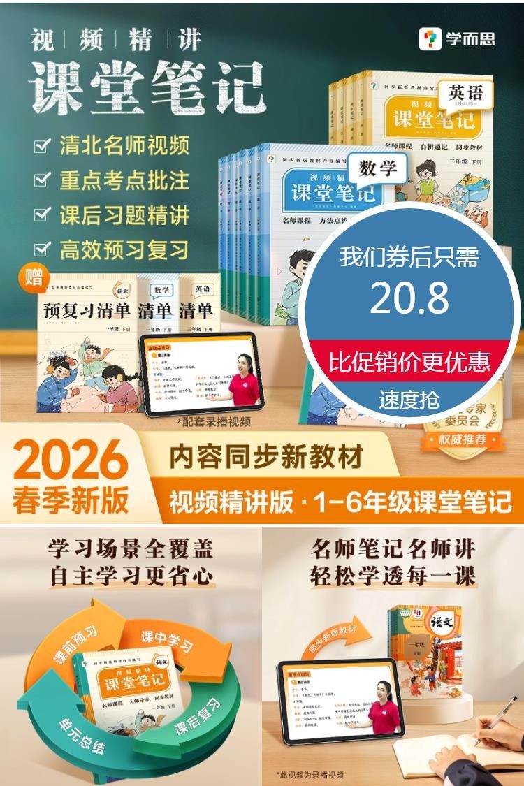 【消费券+淘金币!赠练习册】学而思课堂笔记,同步教材,提前学习不焦虑,名师课程,轻松学透每一课,问答批注,学习场景全覆盖,自主学习更省心,专属伴学营,28天坚持打卡,轻松学习不费妈!