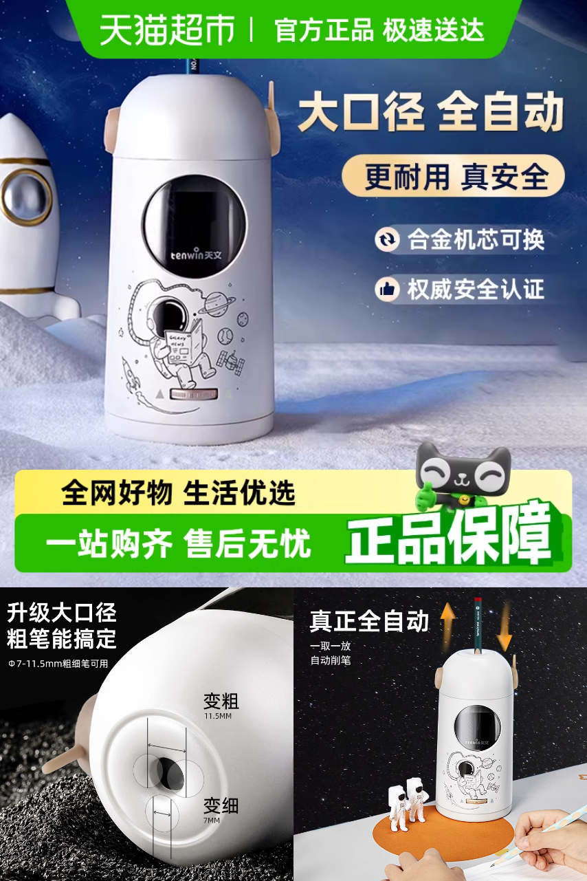 【88vip减5.2元,叠加淘金币预估89!】天文全自动大口径旋笔刀,一取一放自动削笔!粗细杆铅笔皆可用!3档可调,刀架寿命长,TYPE-C充电口,全新升级!