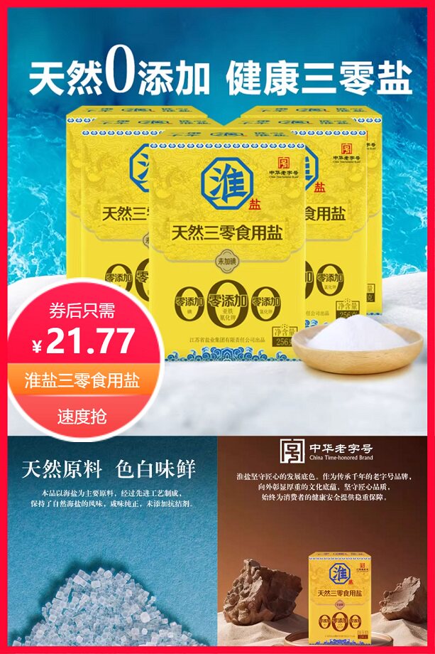 推荐:秒杀20元!送围裙!淮盐三零未加碘食用盐
