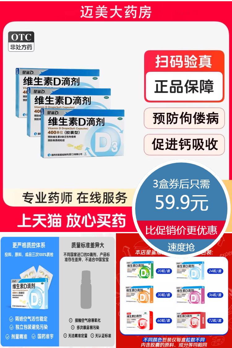 【3盒72粒装】星鲨儿童D3软胶囊趁活动囤!高纯度0色素,健康成长星鲨维生素D滴剂!给宝宝补充D3,促进钙吸收~【赠运费险】