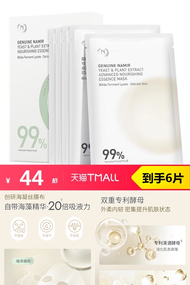 【立减9.6元,叠加消费券,到手39.6元】美修全绿,双重专.利酵母,外柔内韧,密集提升肌肤状态。创研海凝丝膜布,自带海藻精华·20倍吸液力。膜布采用仿生生物发酵膜布,能够帮助平衡水油、软化老废角质,让肌肤净爽清透,适合密集护理。