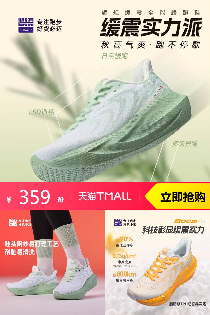 【立减优惠56元,满459减44元,淘金币抵扣9.18元,到手价349.82元。】中底加厚,优化黄金坡差,7.5mm的中坡差,跑动更均衡。