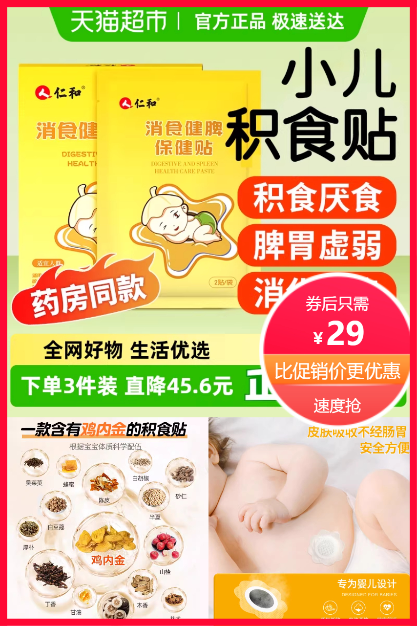 仁和小儿健脾消积食贴,缓解消化不良积食,理气健脾,化湿和胃,不哭不闹,延长深睡眠,一贴见效,无激素无副作用,安全放心,居家必备,多一份准备,少一分担心!宝宝吃的好,妈妈更舒心!!