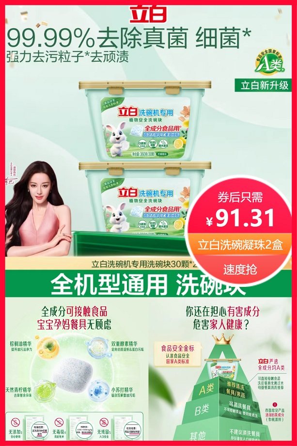 官方立减20元+券10元+88vip省5元+淘金币抵扣8.59元后约86.31元,消费券+限时红包更实惠,立白植物源洗碗机A类洗碗块,孕婴全家餐具安心洗,食品级配方,重油焦糊,一块洗净,超赞~
