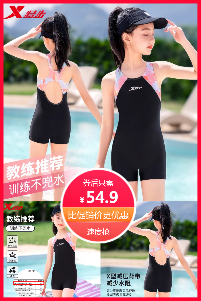 ⭕2025新款特步时尚儿童连体泳衣