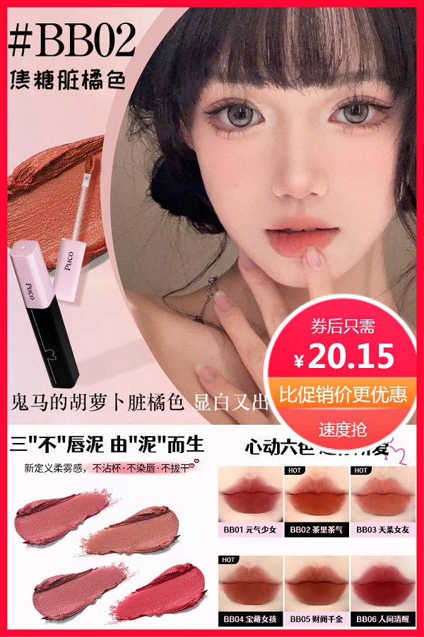 【加入店铺会员更优惠!】PUCO噗叩啵啵唇泥,哑光雾面不沾杯,持久锁色不易掉,妆效高级质感立现~轻盈不厚重,显色均匀,日常通勤约会都出彩!