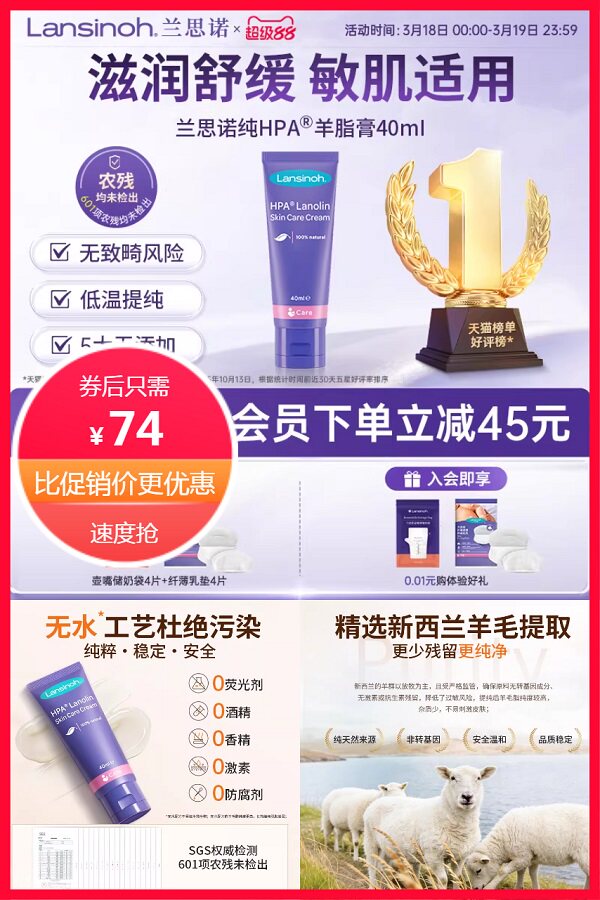 兰思诺进口羊毛脂乳头膏40g 11元减13 商品纠错