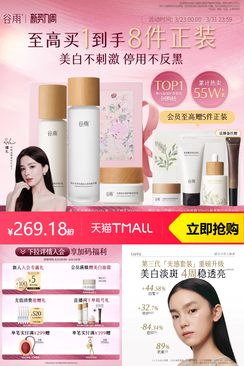 推荐:谷雨第三代光感水乳套装美白淡斑修护提亮肤