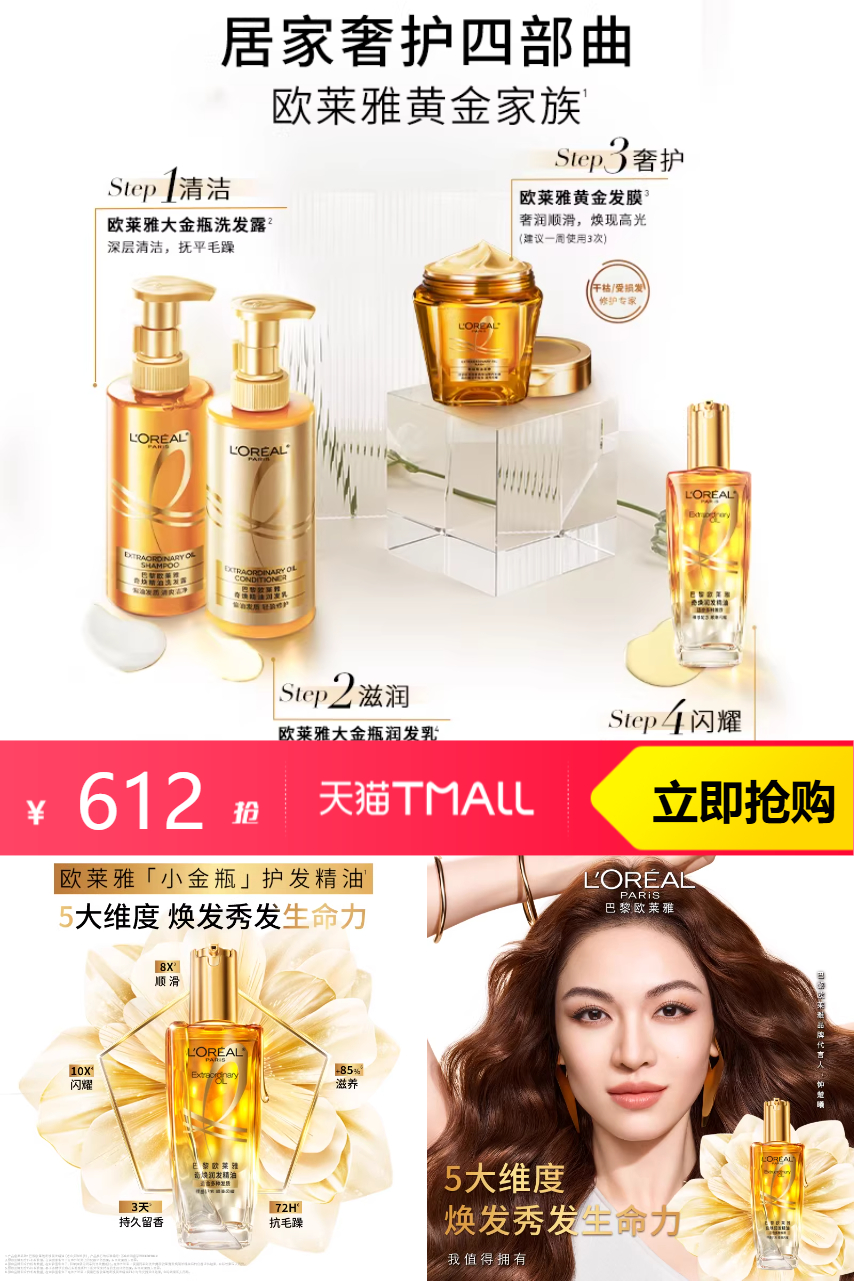 【买1减170元 ,送精油30ml*6,叠加8.46元淘金币+0.03元红包,到手603.51】欧莱雅小金瓶精油100ml双支装*6套,焕发秀发生命力。