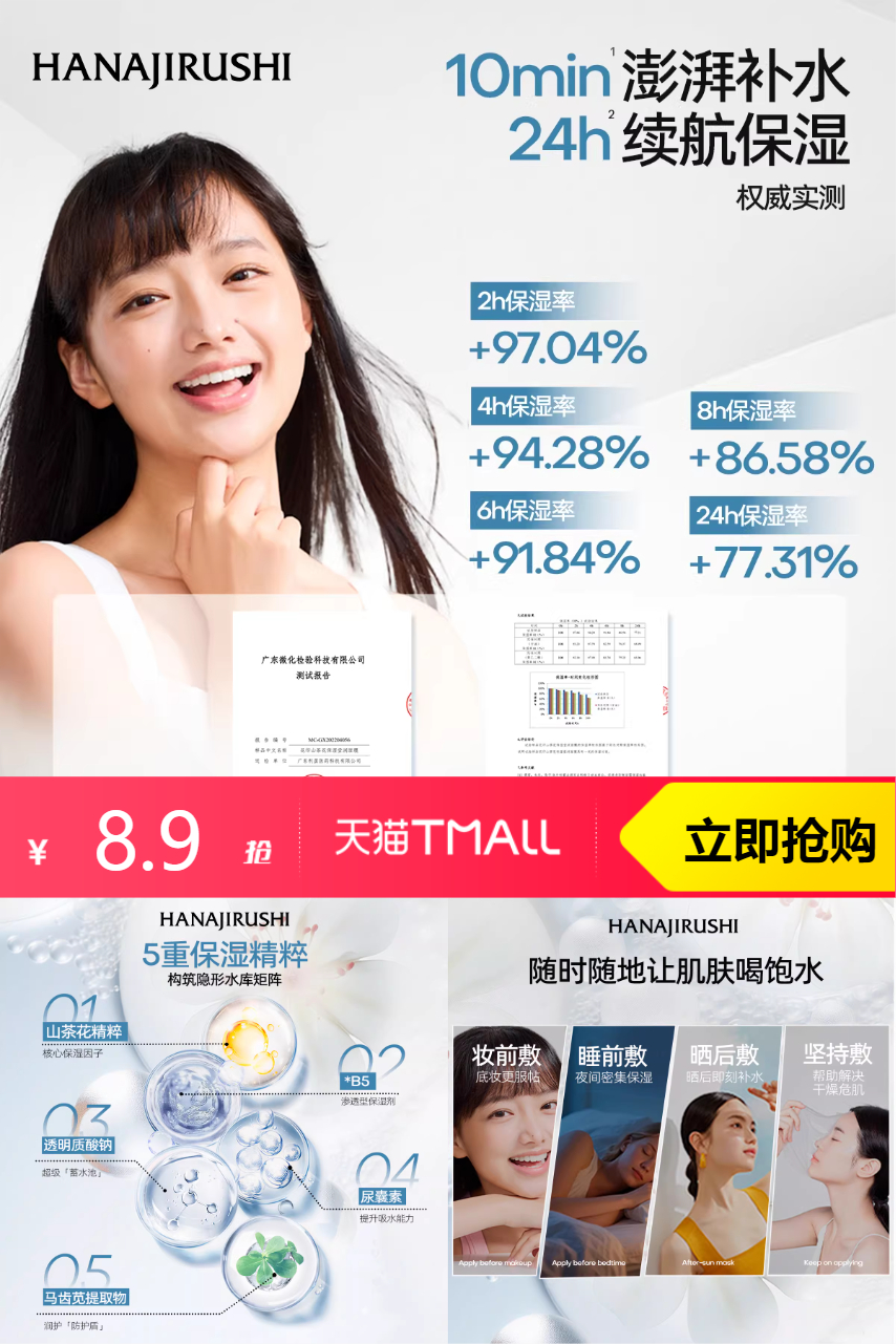 【叠加88vip抵扣0.44元+淘金币2.14元+凑消费券200-25=到手仅需5.52元。合计单片/1.1元】花印山茶花保湿莹润面膜25片,澎湃补水,24h长时保湿。