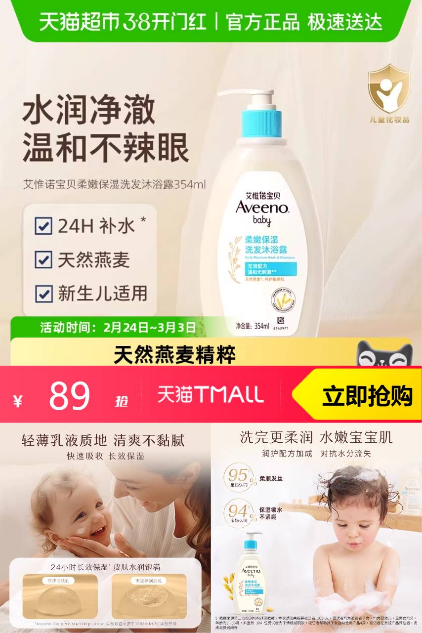 【官方立减25,超值换购5,购物券10,88VIP3.95,淘金币2,政府补贴5.11.到手价67.94.】艾惟诺宝宝婴儿童沐浴洗发二合一滋润补水,燕麦精华温和滋养,洗发沐浴一瓶搞定!婴儿专用配方,0-6岁安心使用~