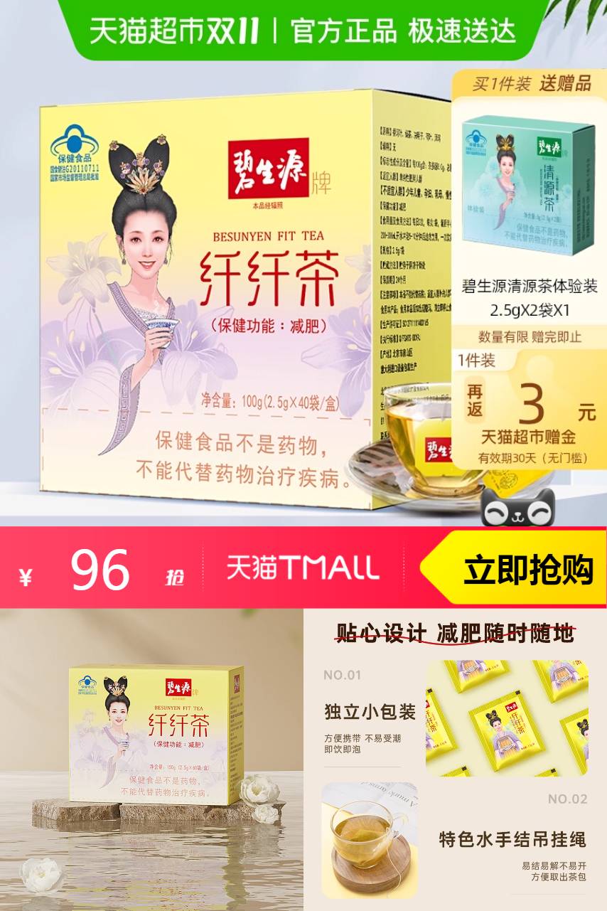 【原价136,超市立减40,88vip减4.8,淘金币抵扣9.18,叠加九折消费券到手仅需73.82,下单返猫卡3元,实际到手仅需70.82,到9左右】天猫发货放心囤~碧生源大牌,减肥茶纤纤茶!专注体重管理20年!蓝帽认证,草本减肥配方,饭后一杯,清爽解腻又减肥!