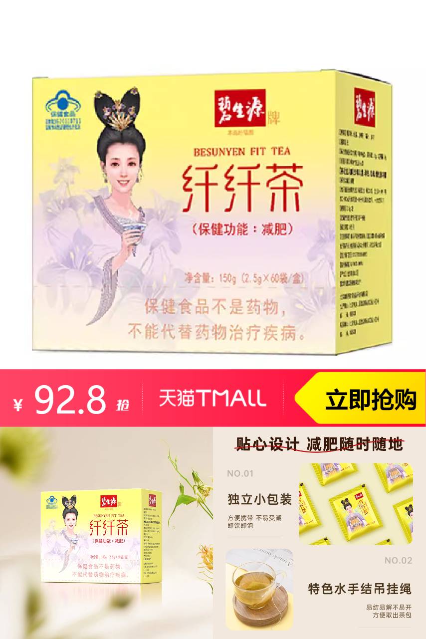 【原价136,官方立减43.2,淘金币抵扣6.8,88vip减4.64,凑单消费券到手仅需71.19】天猫发货放心囤~碧生源大牌,减肥茶纤纤茶!专注体重管理20年!蓝帽认证,草本减肥配方,饭后一杯,清爽解腻又减肥!