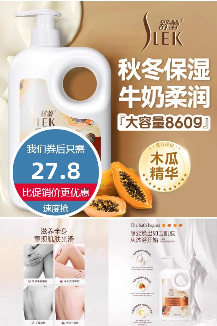 【2瓶/瓶13.9元】舒蕾沐浴露大瓶860g,家庭装,男女通用!深层清洁,水润光泽,保湿补水,自然香氛,留香持久!10大无添加,健康更安心!四季都可以用!