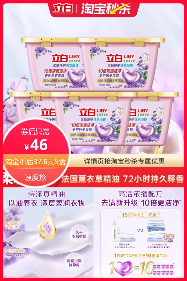 下拉详情淘金币省3.06元+88vip省2.3元后约40.64元,叠加300-30+限时红包更实惠!立白香氛净护洗衣凝珠薰衣草,除菌,抑菌,洁净,三效合一!1颗搞定浓缩配方!去渍去污方便,高效洗衣,解决衣物清洁难题,全家衣物够量洗!