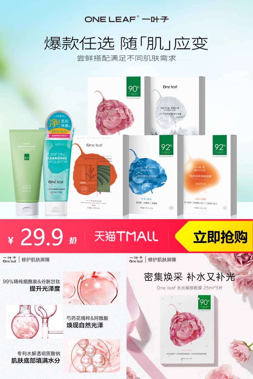 【可叠消费券200-25,到手26.16】拍3!一叶子面膜洁面去角质素合集,它的保湿效果也非常好,能够迅速为肌肤补充水分,让你的肌肤水润透亮。