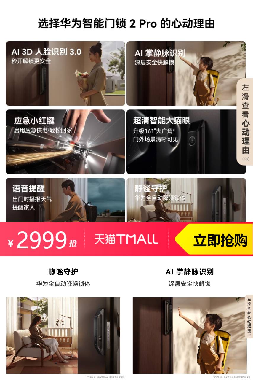 【3199-华为大额券200-40.96淘金币-15%国补=2514!前4名半价!6期免息,S单赢30红包】华为智能门锁 2 Pro,解锁方式随心选,开启便捷新体验。