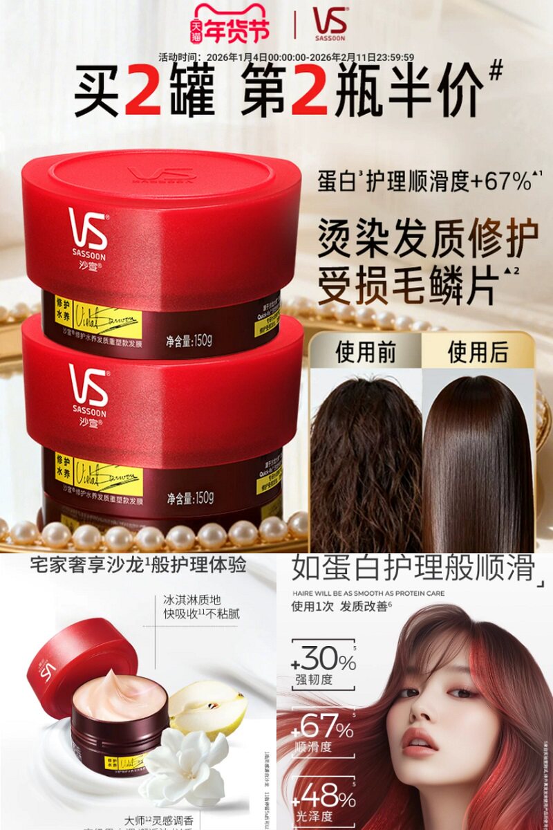【官方立减21.4+领券5+下拉淘金币抵4.73+入会立减3到手低至47.07】沙宣大红罐蛋白修护发膜,内填充蛋白营养直达发芯,外锁护蛋白营养不流失,沙龙精研水解小麦蛋白分子易吸收,精准深层修护受损,专为染烫受损脆弱发质设计!
