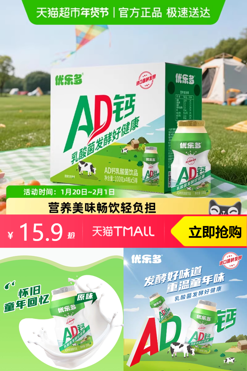 推荐:优乐多AD钙奶乳酸菌100gx20瓶