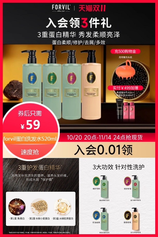 官方立减16元+券53元后约59元,深养头皮修护发丝,FORVIL全新*配方基底3重护发蛋白精华,抚平毛躁飞翘发长期使用柔顺发丝,花果清甜馥郁迷人,呵宠干枯受损发。