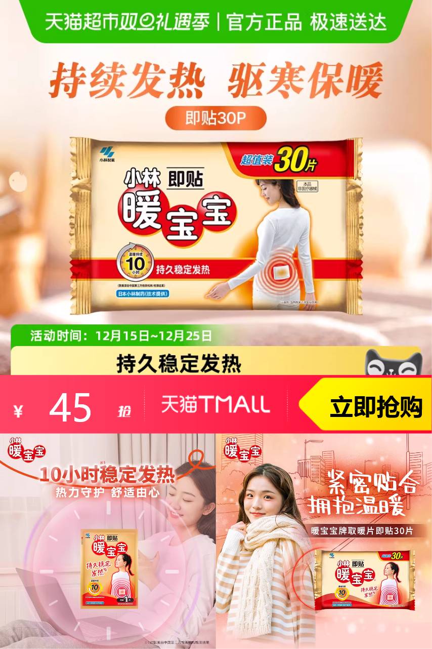 【原价75-88VIP2.25-超市立减30-金币2.25辛苦立减3=37.5到手】小林制药暖宝宝即贴保暖贴冬季防寒御20片,产品防寒效果明显,不仅是为严寒而生,更在于提升日常生活中的生活体验和幸福感。
