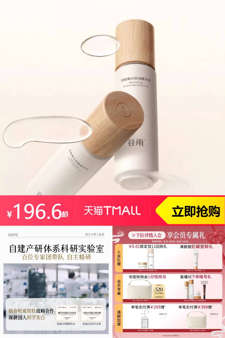 推荐:谷雨雪肌水乳套装美白提亮减黄抗糖保湿