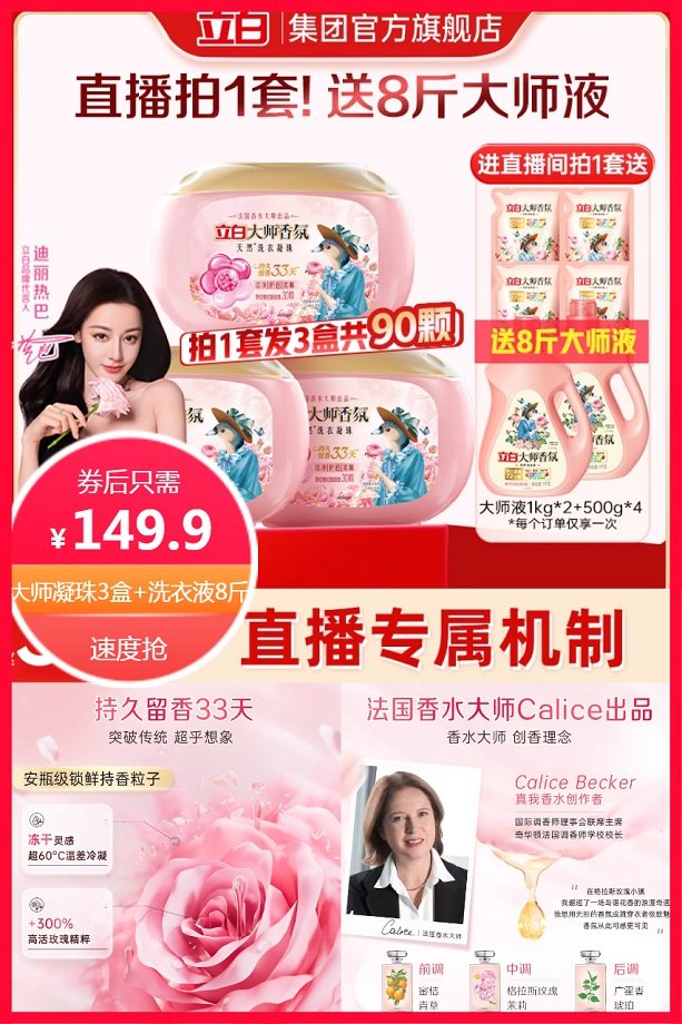 88vip省7.5元+点击右上角三个点进入淘金币省5.69元+限时红包1元+券40元后约135.71元更实惠!叠加消费券更实惠!套餐内含:立白花朵珠30颗*3盒+大师香氛洗衣液1kg*2瓶+500g*4袋,冻干锁香灵感,33天持久留香,突破传统,护色更柔顺,一颗四效,分腔储存!