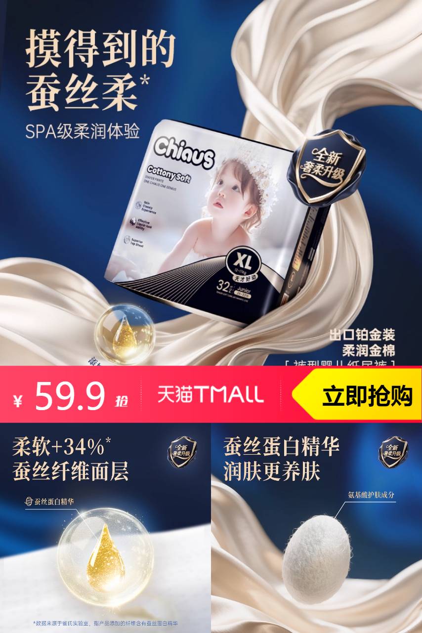 雀氏 雀氏出口铂金装柔润金棉纸尿裤NB-6XL 119.9元减15 商品纠错