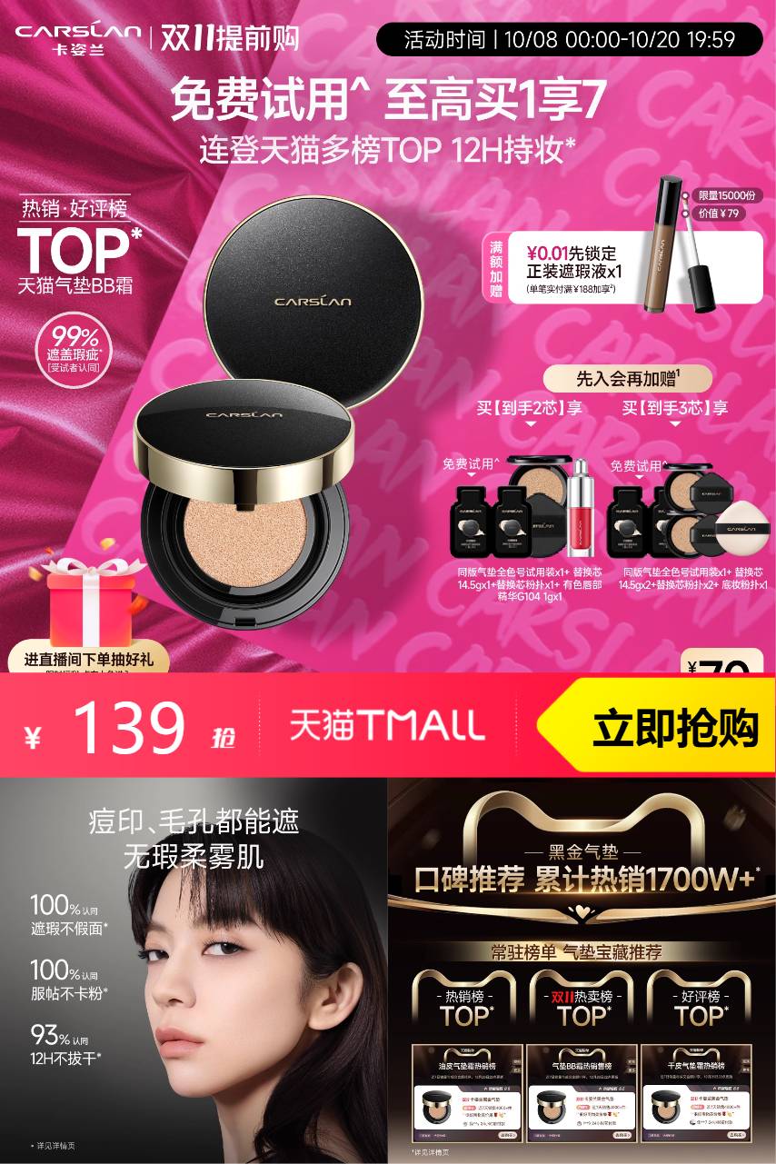 您的位置: 选单 > 美妆 > 买一送一!卡姿兰黑金气垫
