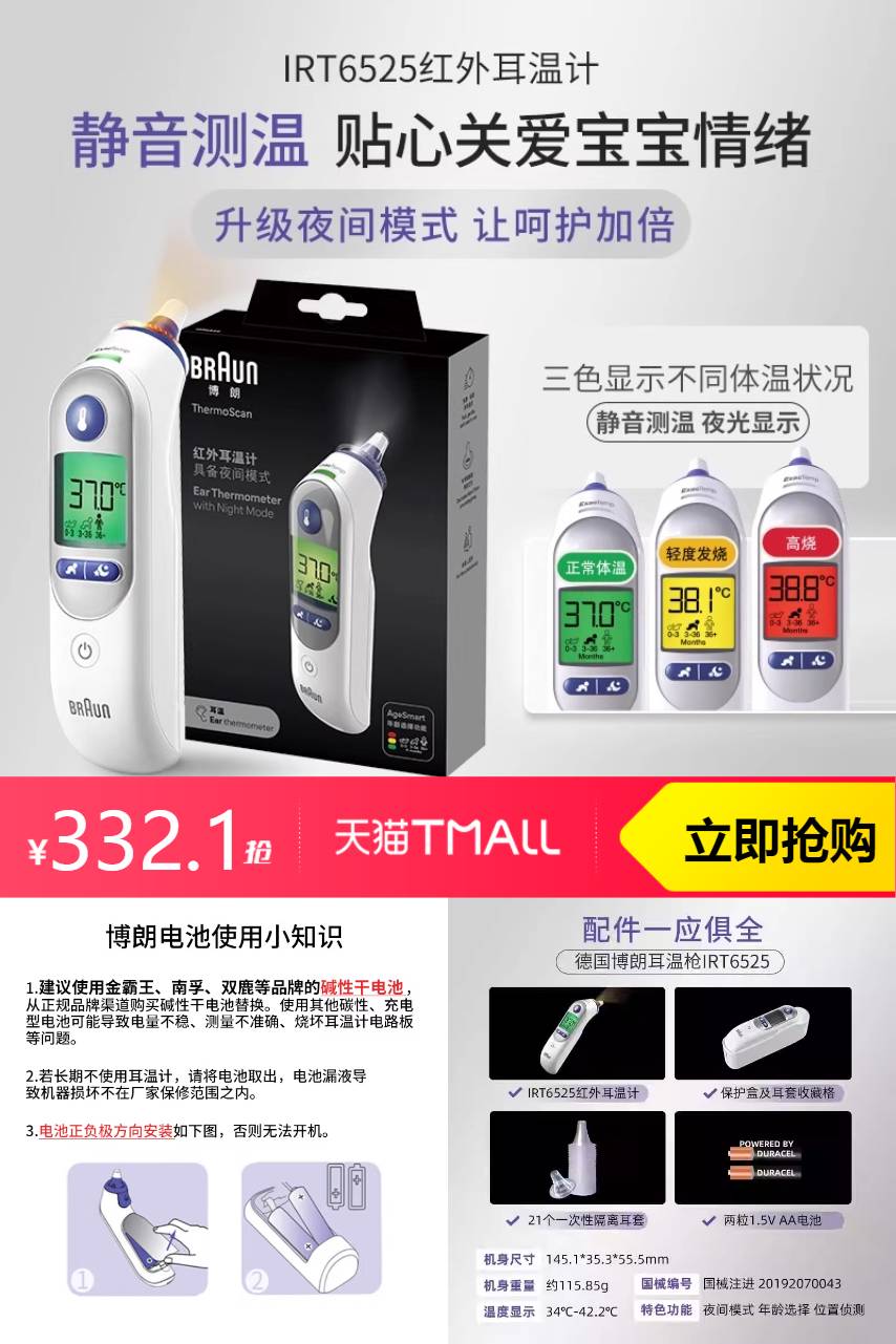 【先详情页点直播间加购。叠加88vip95折抵扣16.61元+消费券9折+国补30%=到手仅需198.76元】RT6525红外耳温计,夜光显示,静音测温,全新夜间模式,年龄功能选择,位置侦测功能,预热测温技术,守护全家健康~