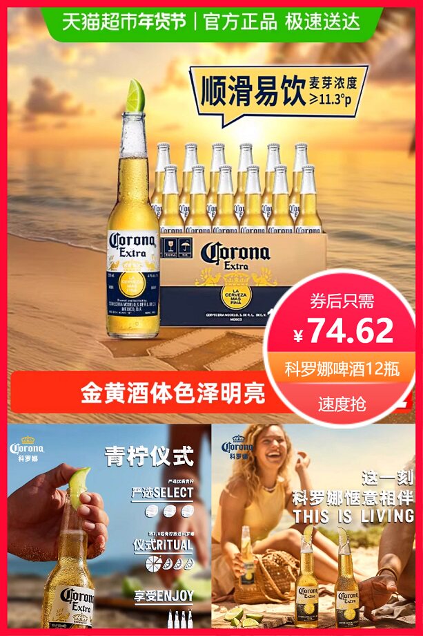 推荐:67元科罗娜墨西哥风味啤酒11.3度12瓶