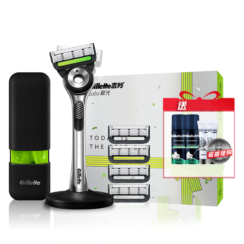 【顺丰!叠精致生活券+88VIP消费券到手更低!12件好礼!1刀架+5刀头+磁力底座+旅行收纳盒!赠绿茶须泡50g+云感洁面20g*2】百年吉列男士剃须刀,极光Silky净剃科技,纳米级5层刀片,亲肤润滑条遇水成膜,安全顺滑防刮伤,5年质保!